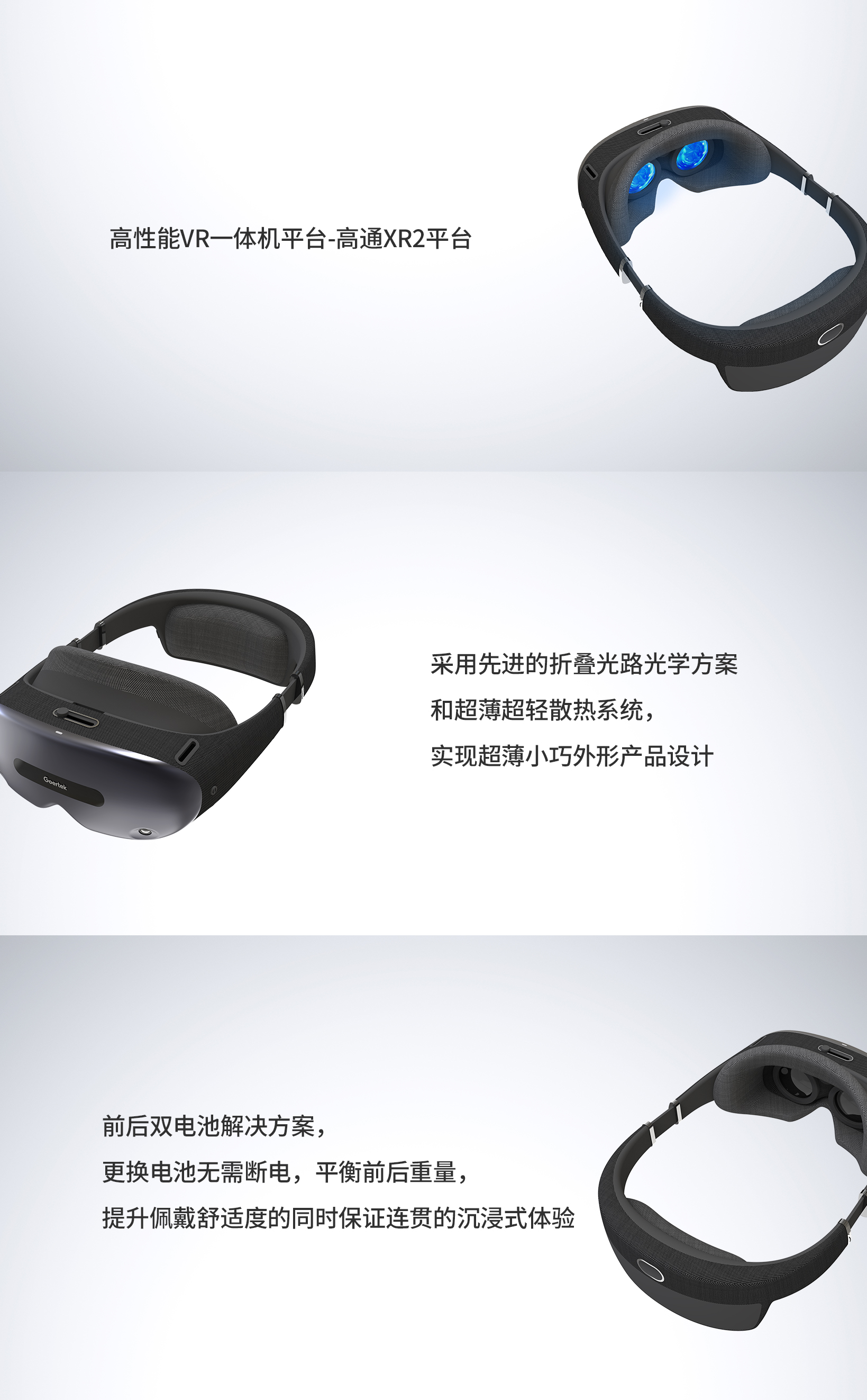 基于高通驍龍XR2平臺(tái)的VR一體機(jī)參考設(shè)計(jì),采用折疊光路光學(xué)方案實(shí)現(xiàn)超薄小巧外形產(chǎn)品設(shè)計(jì),為消費(fèi)者和企業(yè)用戶提供沉浸式體驗(yàn)。